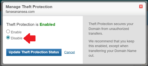 If you are looking to transfer your domain away from Goimagine Domains to another domain registrar (such as, GoDaddy, Namecheap, SquareSpace, etc.) you need to UNLOCK the domain and then use the SECRET AUTH CODE to transfer it to the new registrar.